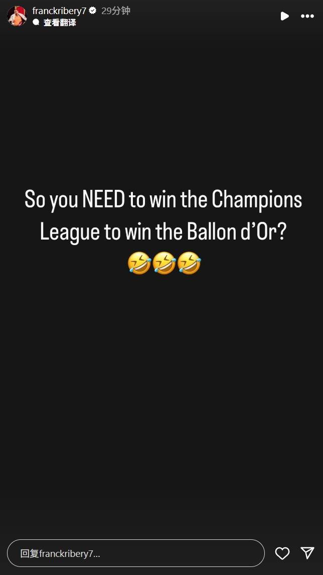 里贝里在社媒写道:“所以你必须赢得欧冠才能获得金球奖吗????”。